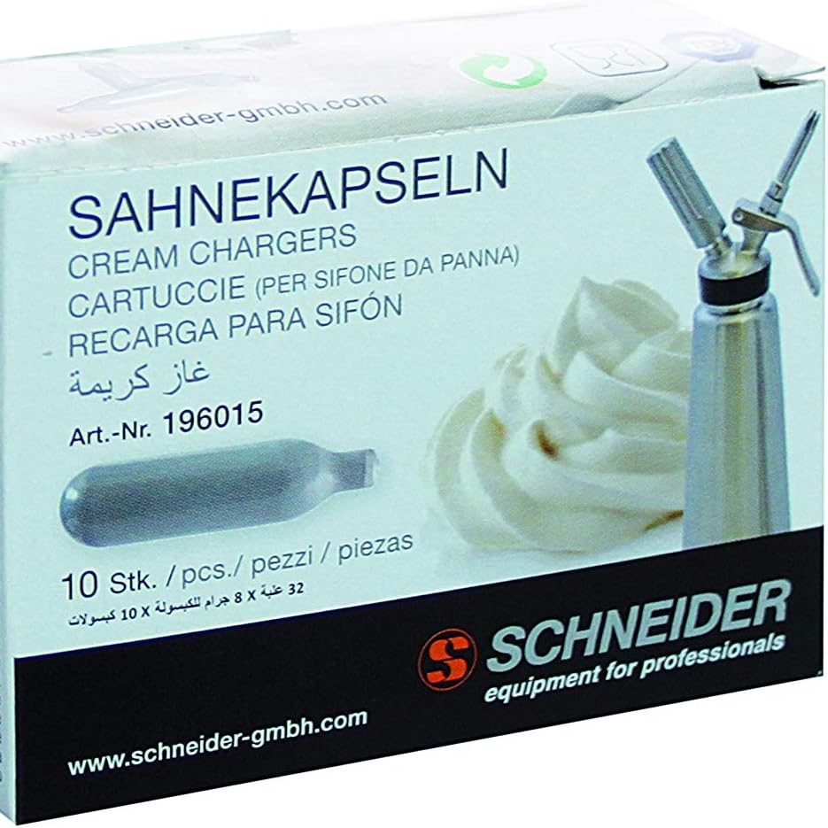 Standard cartridges that are compatible with all brands of siphons. Cartridges to fit siphons (Mastrad, Kayser, ISI, ICO, Mosa, Liss, Whip It, etc.). Box contents: 10 refills of 8 g of nitrous oxide (N2O). The cartridges have a shelf life of 5 years. This product is universal and can be used with all siphons that act as a whipped cream maker. Tips: Keep the N2O cartridges in a dry place at room temperature (20 to 30 degrees). Please avoid inhalation of the gas in the cartridge. This ink cartridge is designed for food preparation using a siphon for making whipped cream, mousses.